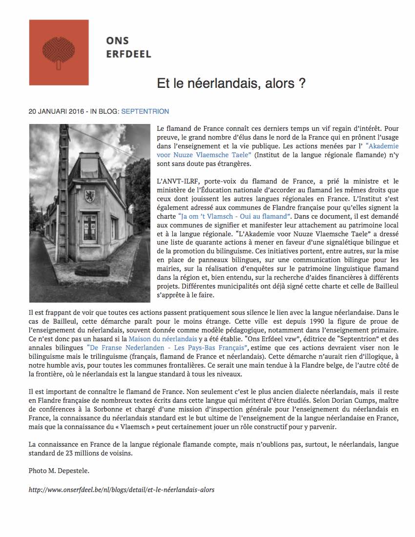 Cette catégorie contient des articles et des communiqués de presse relatant le flamand occidental ou notre Institut