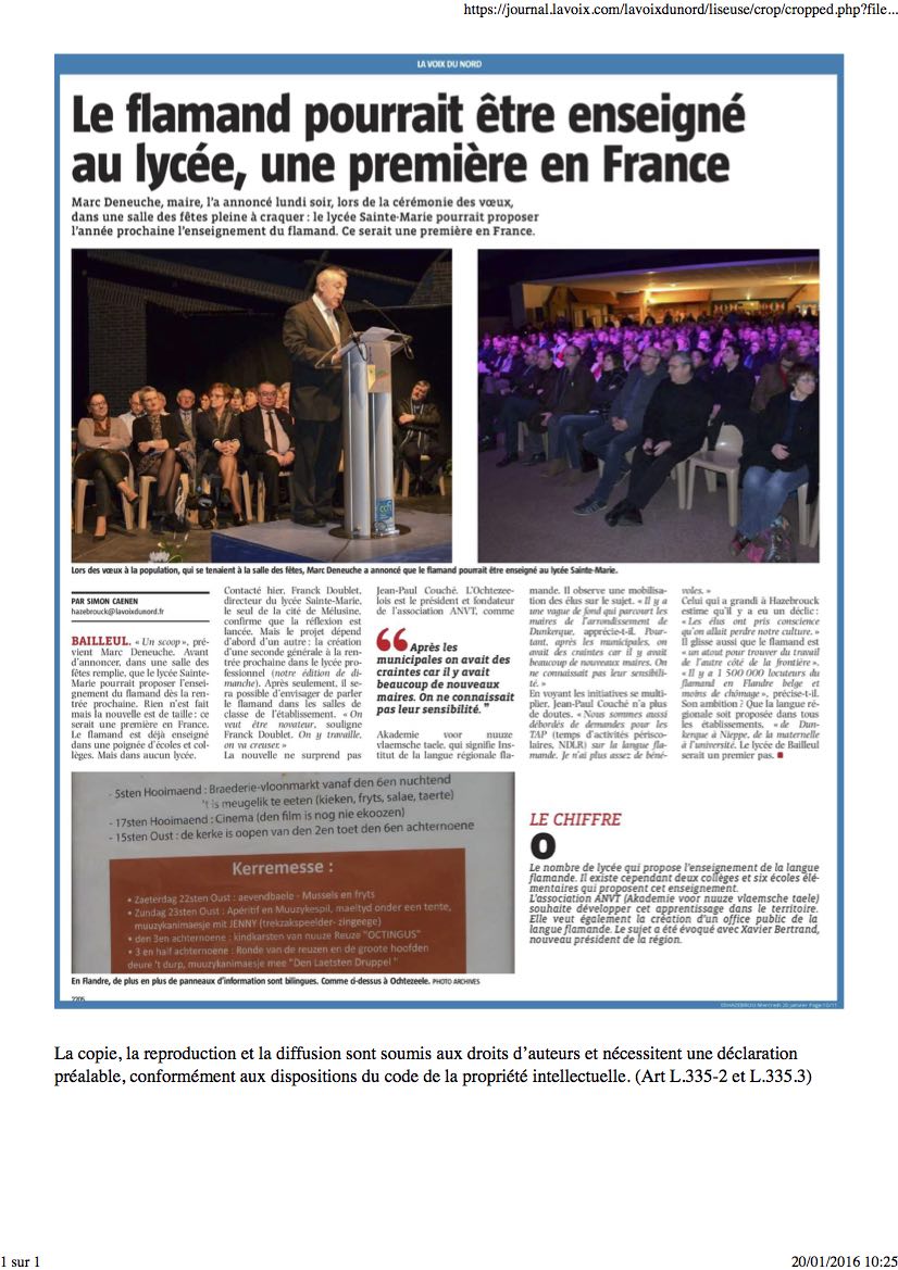 Le président du Conseil Départemental dit "Oui au flamand" = Den prezydent van den Raed van den Departement zegt "Ja om 't Vlamsch"
