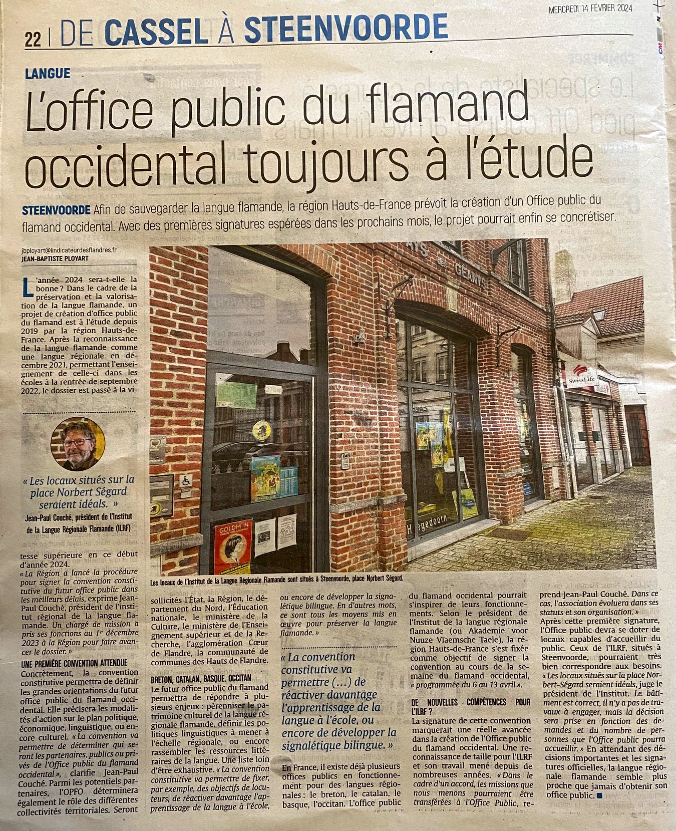 Cette catégorie contient des articles et des communiqués de presse relatant le flamand occidental ou notre Institut