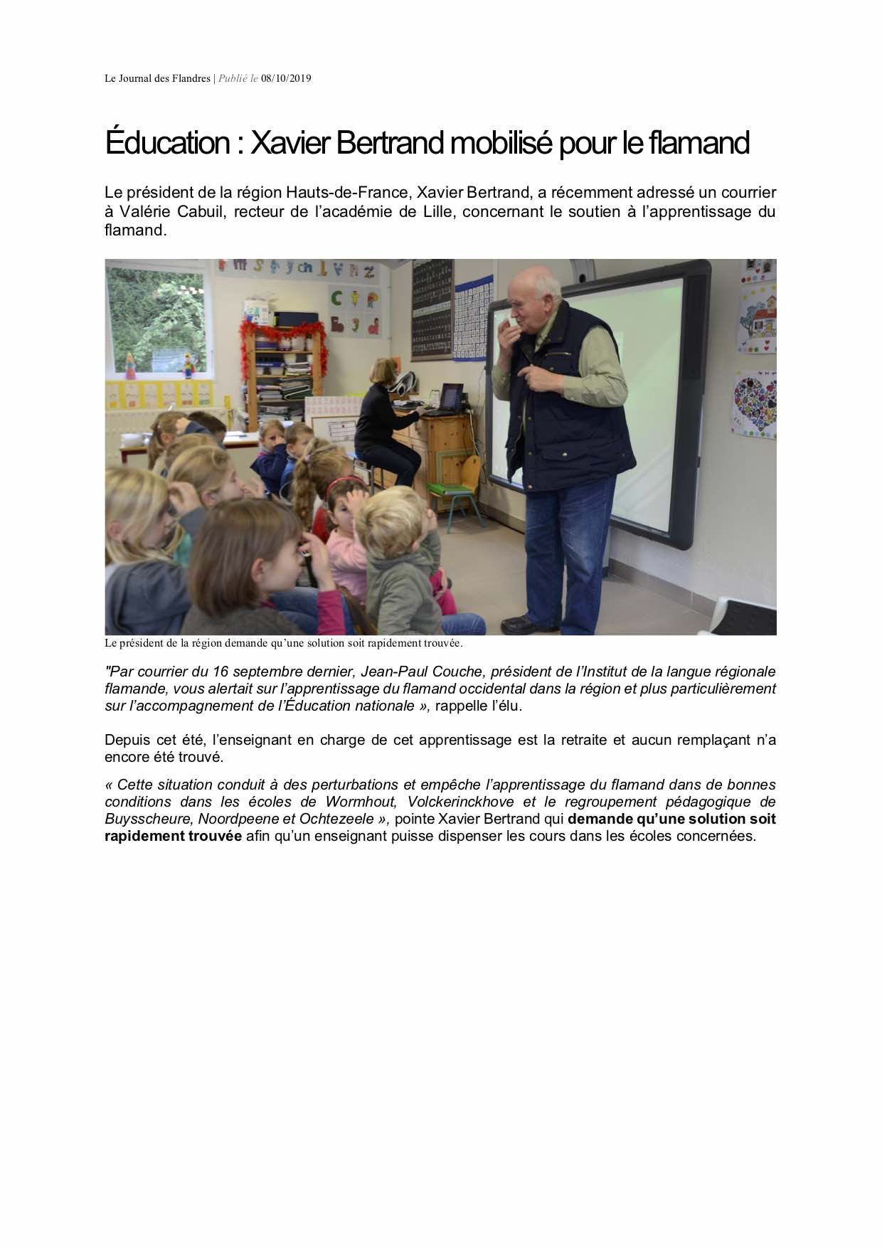 Le Journal des Flandres a publié le 19 juillet 2007 un article concernant l'ILRF intitulé "Des cours scolaires lancés à la rentrée".