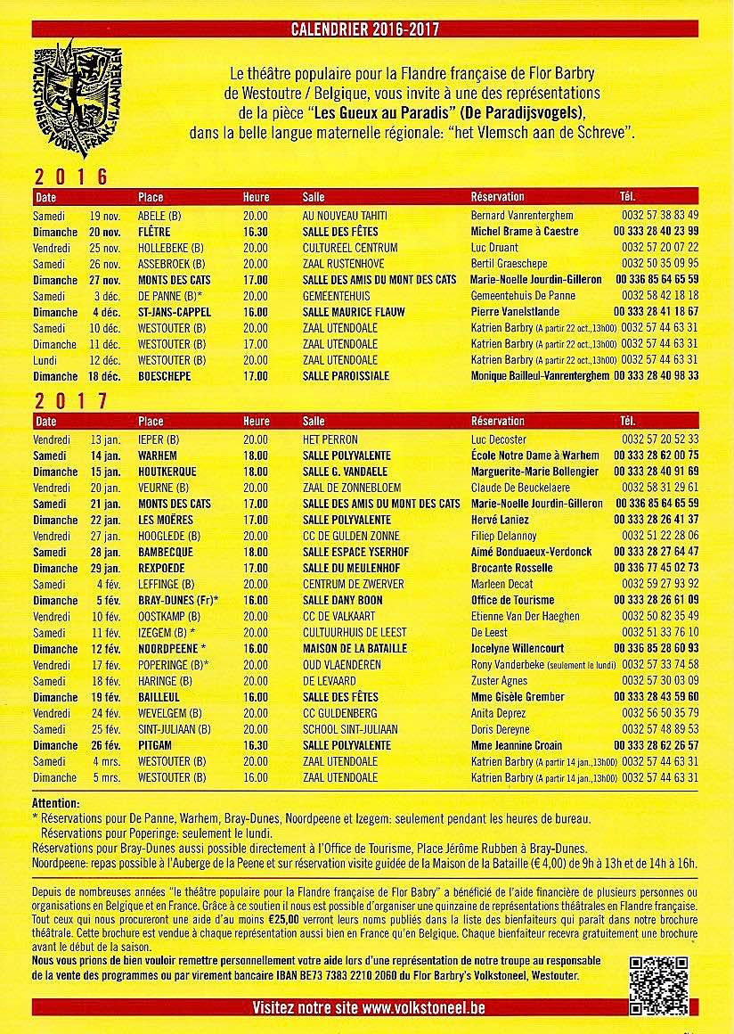 Calendrier des représentations de la pièce de théâtre "De Communiefeeste" (le repas de Communion) 2018-2019 en flamand occidental