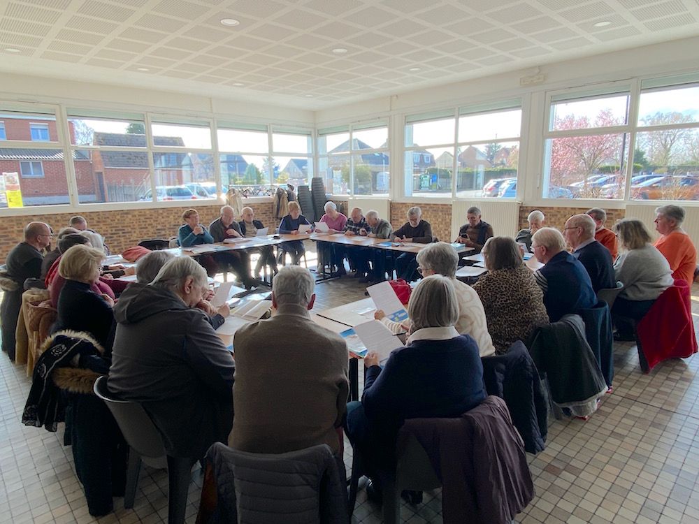 De meidoenders zyn ekommen van de tweë kanten van de schreeve om tegaere te klappen van den karnaval en van den uutkom en om tegaere te zingen mee de helpe van Styntje Lambrecht en Joël Devos. Mit eënigste prulletjes en een teugsche kaffe (bedankt Claudine), de Vlamsche leute wos mei !