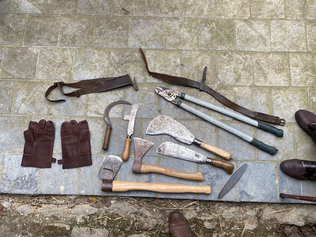 Me weeten nuu ael van 't kapmes, 't hommes, den meshaek, den trekker, de happe, 't buschpeerd, de halve maene, op de scheëve branken, de uutloopers, de kruushaegen en de plakhaegen,.... en nog zoveele dingen ...