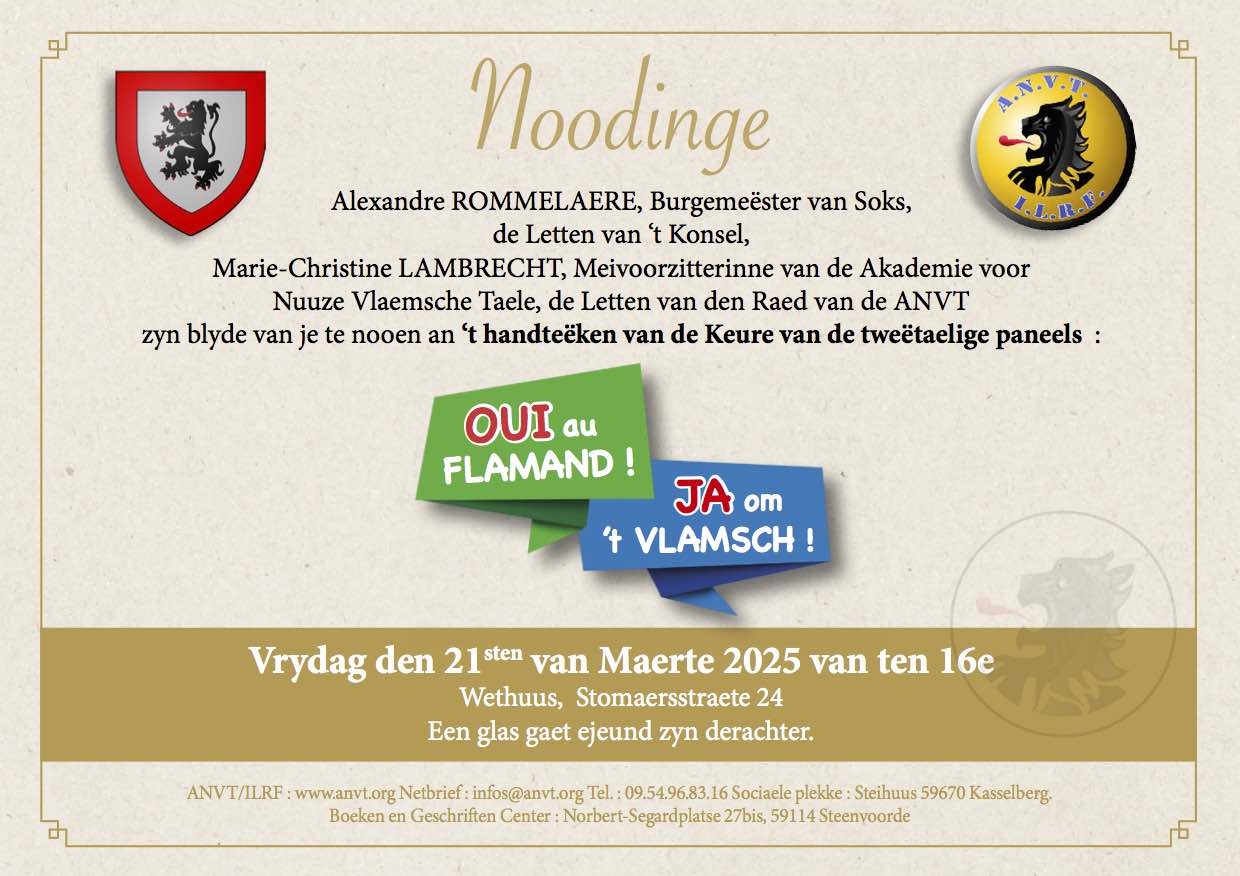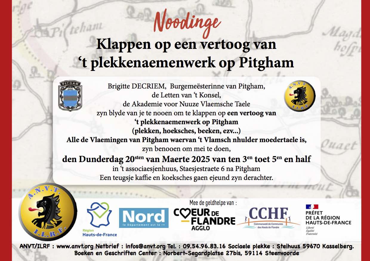 10de Weeke van 't West-Vlamsch 15-22/03/2025 05 februari 2025 Je gaet hier de plakkaerds, den program et ton de verhaeltse van deeze schoone weeke ter eëre van nuuze streeketaele vinden : 't West-Vlamsch Achter